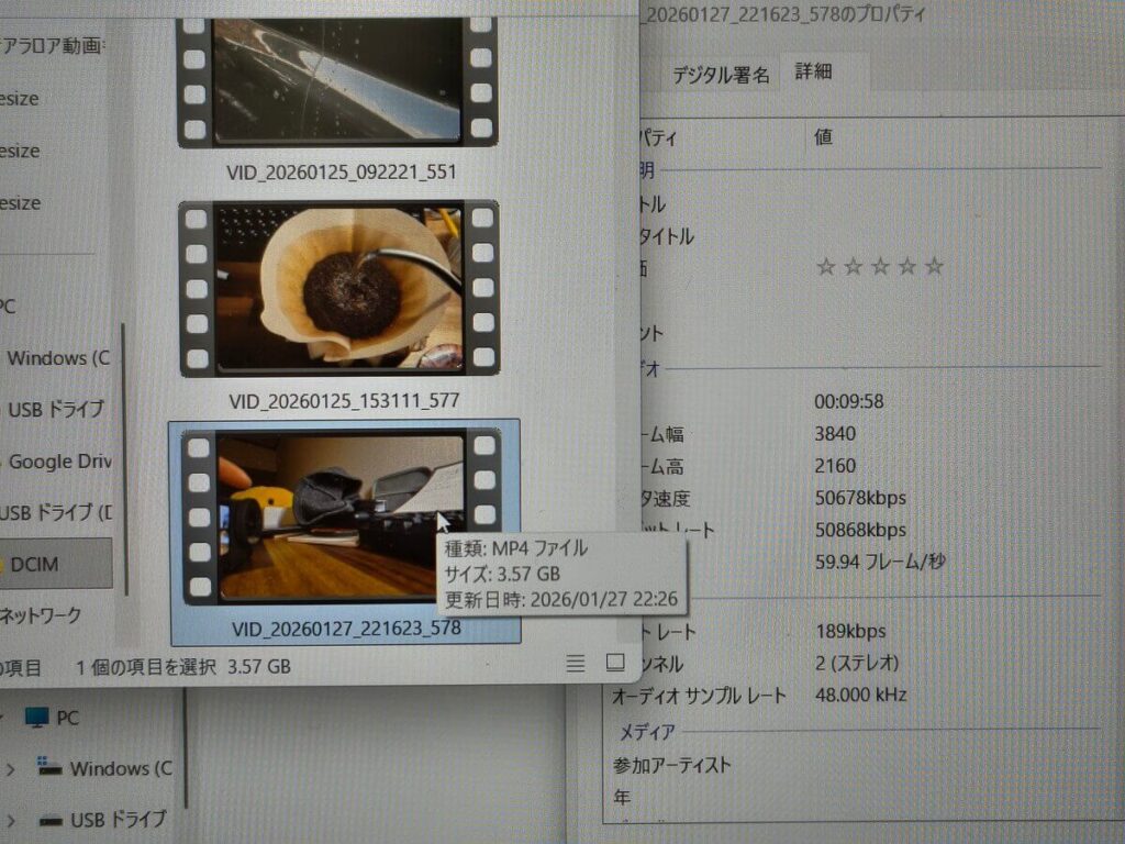 Osmo Action 6は10分で5.39GB