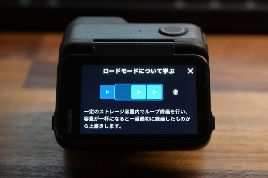 ループ設定とかで、他のアクションカメラも出来るんですが、モードで簡単設定できるのはありがたい。